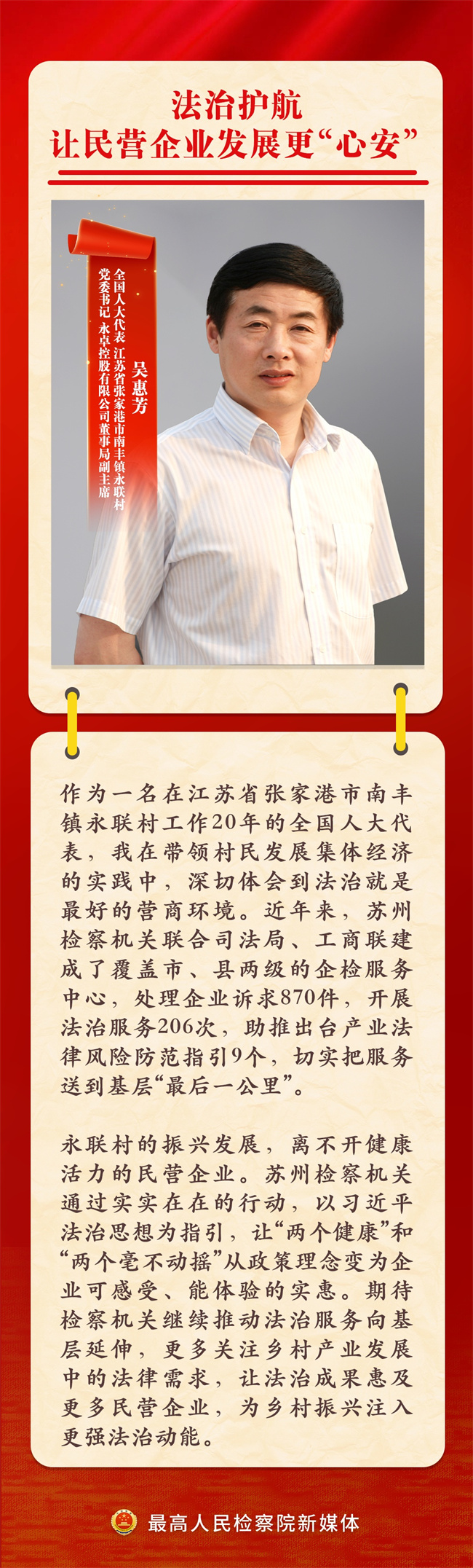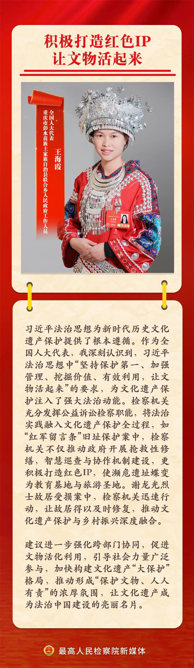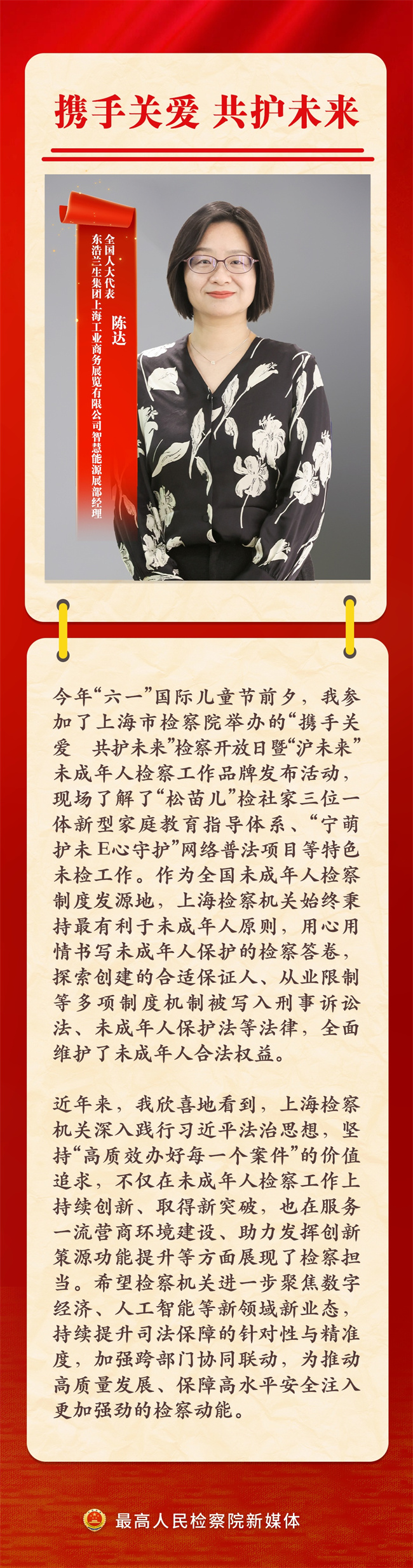 全国人大代表通过监督检察工作、提出相关议案等方式,始终与检察机关紧密协作,共同推动法治建设。2025年,恰逢习近平法治思想提出五周年。检察机关怎样贯彻落实习近平法治思想?9位全国人大代表畅谈习近平法治思想的检察实践↓↓↓